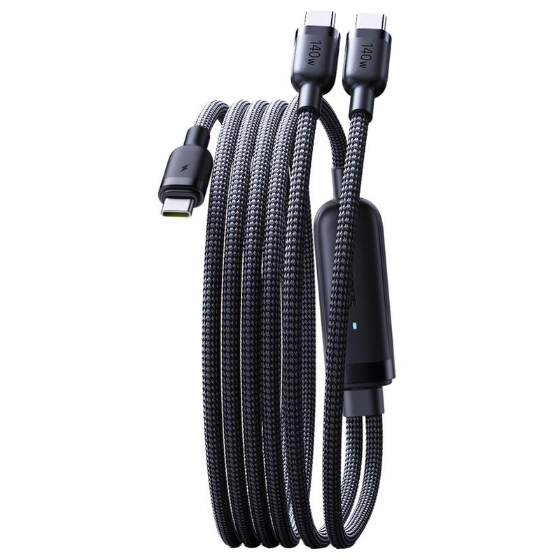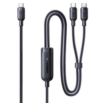 Baseus Flash 4 2-i-1 USB-C til dobbelt USB-C hurtigopladerkabel, 1,5 m - PD 3.1 140 W opladerkabel til flere enheder med kabelholder