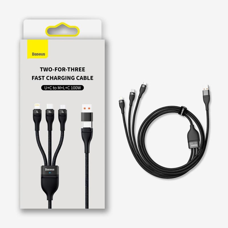 Baseus Flash Series II USB/USB-C til Lightning, USB-C og Micro USB - 100W - 1.2m - sort