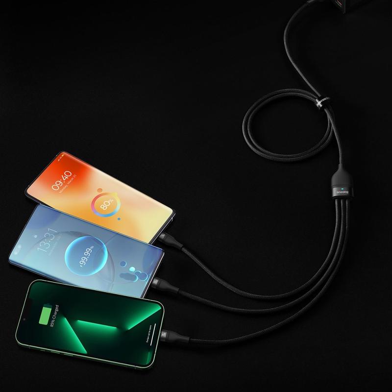 Baseus Flash Series II 100W 3-i-2 hurtigopladerkabel - 1.2m - USB-A- og USB-C-indgang til USB-C Lightning og Micro USB, nylonflettet