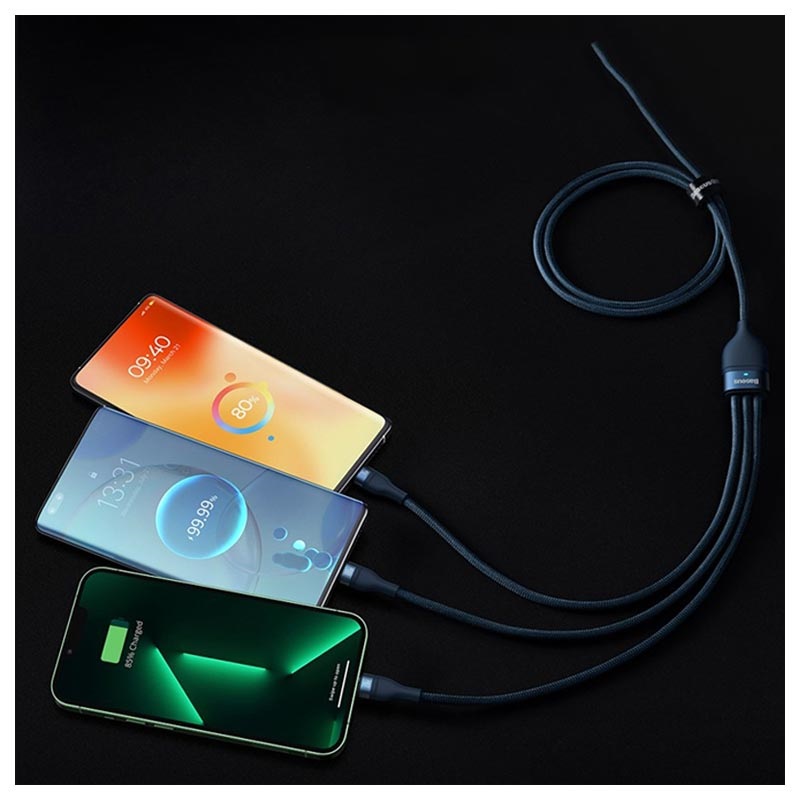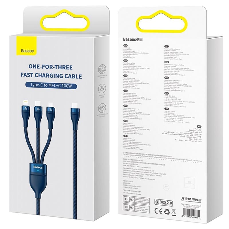 - Højkvalitets Baseus Flash Series II 3-i-1 hurtigopladningskabel