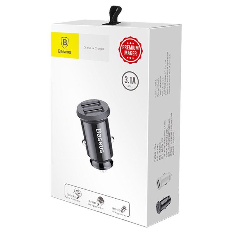 Baseus Grain bilopladeren med to USB-indgange, har også en indbygget smart chip, som automatisk tildeler den korrekte strømstyrke. Med denne lille men kraftfulde biloplader, kan du altid oplade din enhed sikkert og hurtigt.