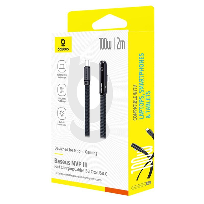 Baseus MVP 3 hurtigopladende USB-C-kabel 100W med bøjet port - 2m - sort