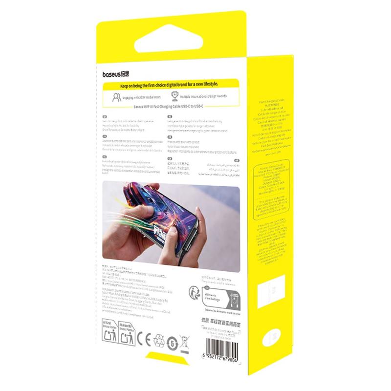Baseus MVP 3 hurtigopladende USB-C til USB-C-kabel med bøjet port - 100W, 480Mbps