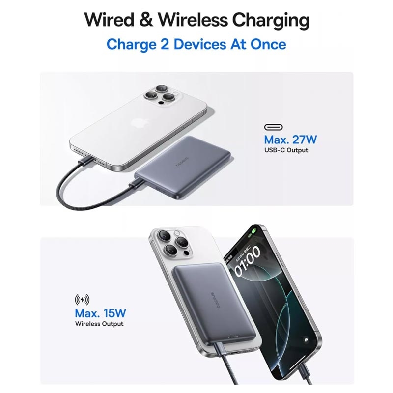 Baseus PicoGo AM41 kombinerer moderne trådløs bekvemmelighed med kraftig kablet opladning i én kompakt enhed. Qi2 magnetisk justering holder din telefon sikkert på plads, mens 27W USB-C hurtigopladning hurtigt håndterer krævende enheder. Den slanke profil, klare LED-indikator og avancerede sikkerhedsfunktioner gør den til en pålidelig strømløsning til daglig brug.
