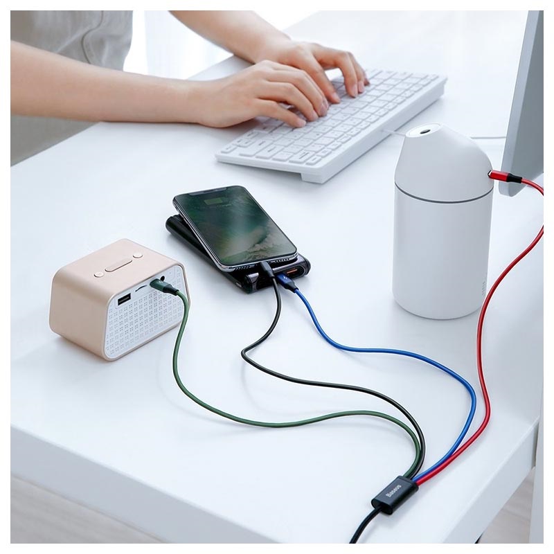 Oplad alle dine enheder med dette Baseus Rapid Series 4-i-1 ladekabel. USB-ladekablet er designet med fire forbindelser og kan oplade flere enheder samtidig. Det har en micro USB-forbindelse, en Lightning-forbindelse og to Type-C forbindelser. Med disse universelle USB multi-ladekabler, kan du oplade og synkronisere alle dine enheder.