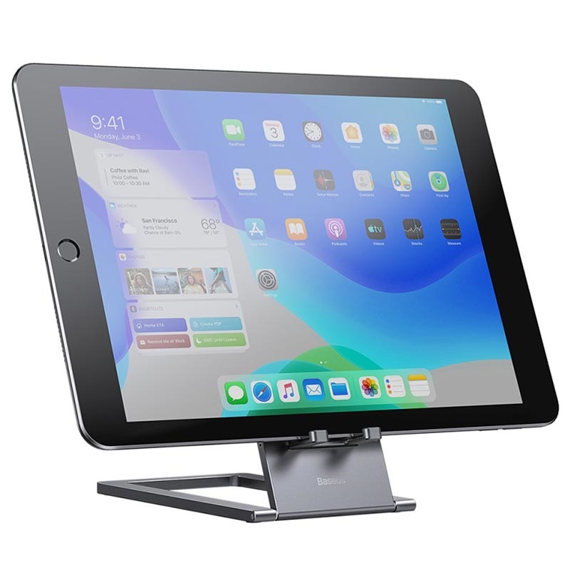 Hav din telefon eller tablet praktisk lige ved hånden med denne skrivebordsholder fra Baseus.