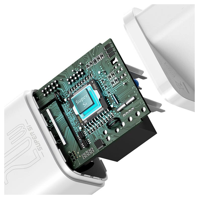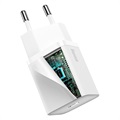 Baseus Compact Oplader 20W - USB-C PD3.0, USB QC3.0 - Hvid
