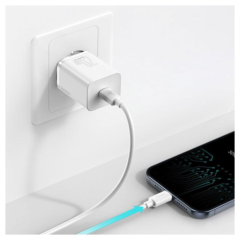 Baseus Super Si Hurtig Oplader med USB-C / Lightning Kabel - 20W - Sort