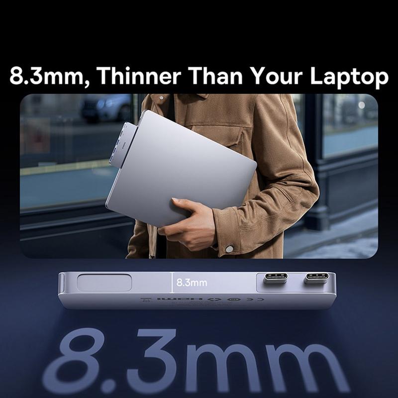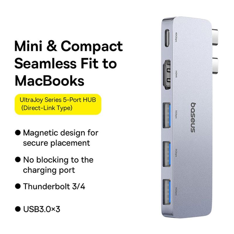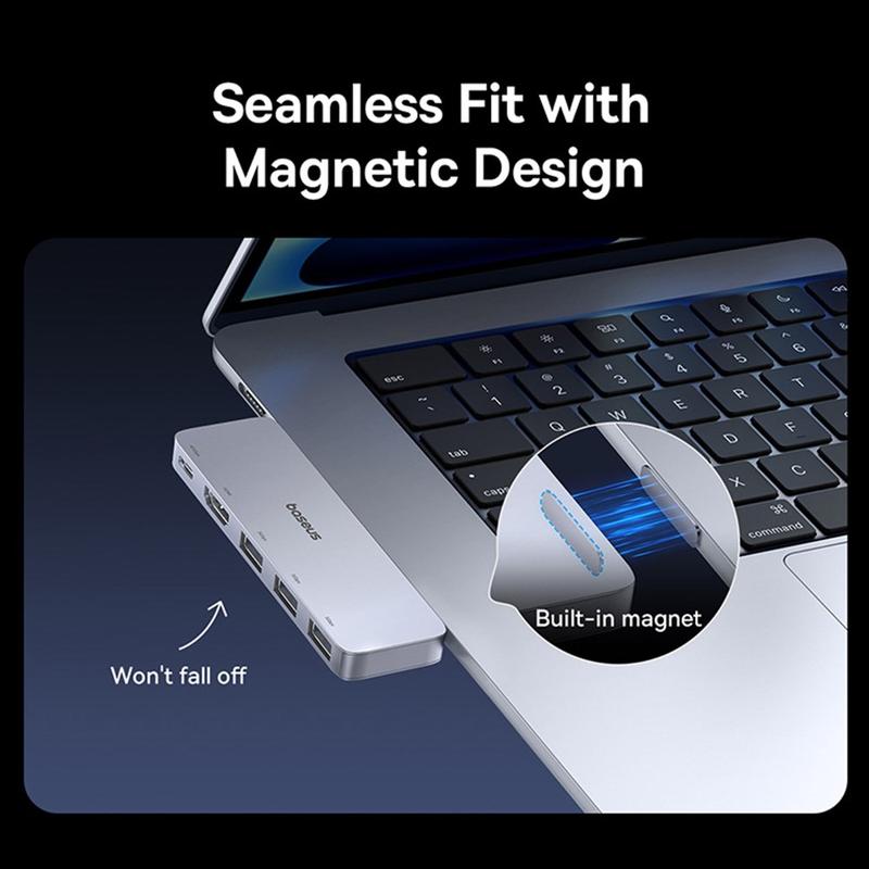 BASEUS UltraJoy 40Gbps USB-C Multiport Hub giver dig alt, hvad du behøver for at få et arbejdsområde uden rod og med høj ydeevne. Dens lynhurtige overførselshastigheder, robuste strømforsyning og alsidige portvalg gør den til den ultimative ledsager til daglige opgaver eller mere krævende kreative projekter. Det magnetiske design tilføjer et lag af bekvemmelighed, der sikrer en stabil, organiseret opsætning, uanset hvor du er.