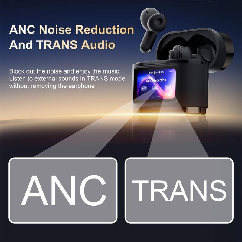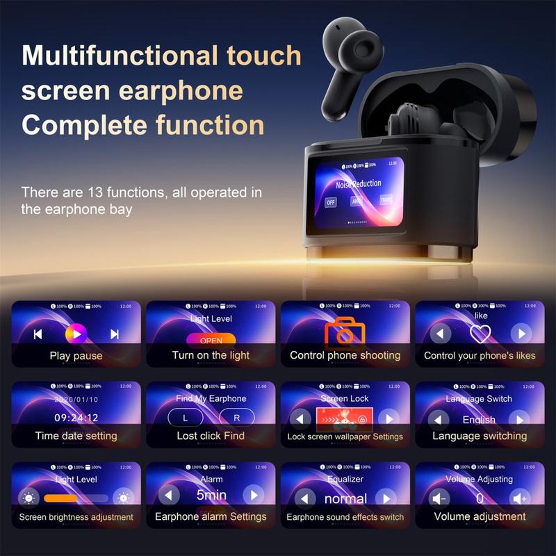 BD2 Smart Digital Display trådløse hovedtelefoner / TWS-øretelefoner med opladningsetui - berøringsskærm, ANC & ENC-støjreduktion