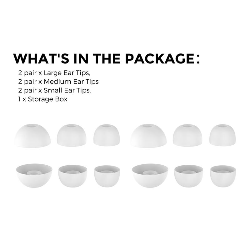 - Tre størrelser (S / M / L) passer til øregange fra 10 mm til 14 mm, hvilket sikrer længere lyttesessioner uden trykpunkter.