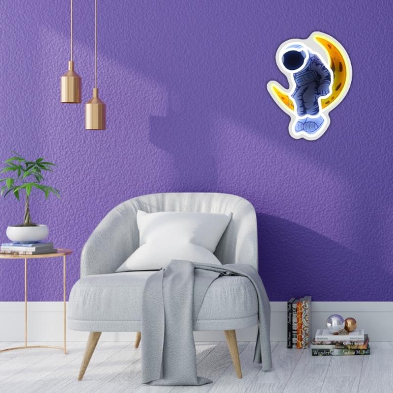 - Slående LED-neondesign - Med en fængslende astronautscene på baggrund af en glødende måne, der skaber en magisk, ruminspireret atmosfære.