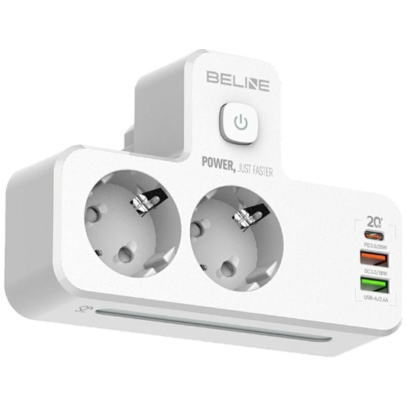 Beline Power Strip med LED-baggrundsbelysning - 2x USB-A, USB-C, 2x AC