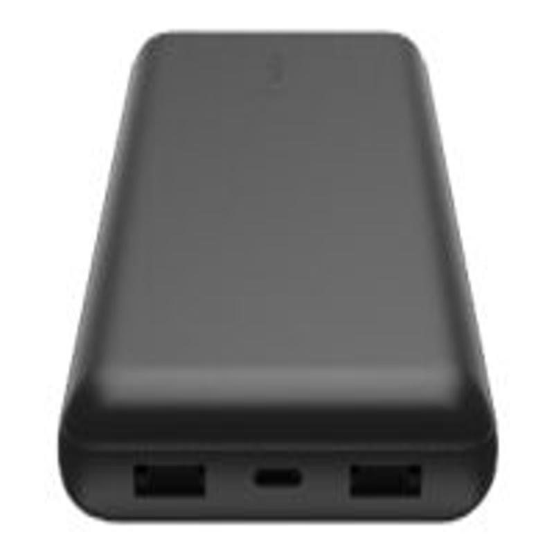 Oplad op til 3 enheder på samme tid med Belkins kompakte og kraftfulde Power Bank 20K. Den har 2 USB-A-porte og 1 USB-C-port, der leverer i alt op til 15W, når du bruger alle 3 porte.