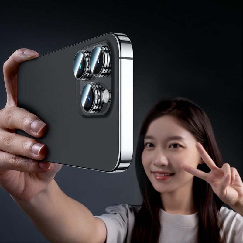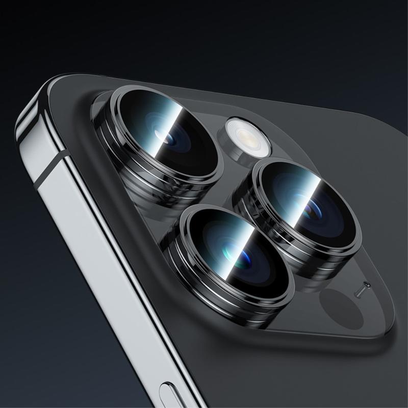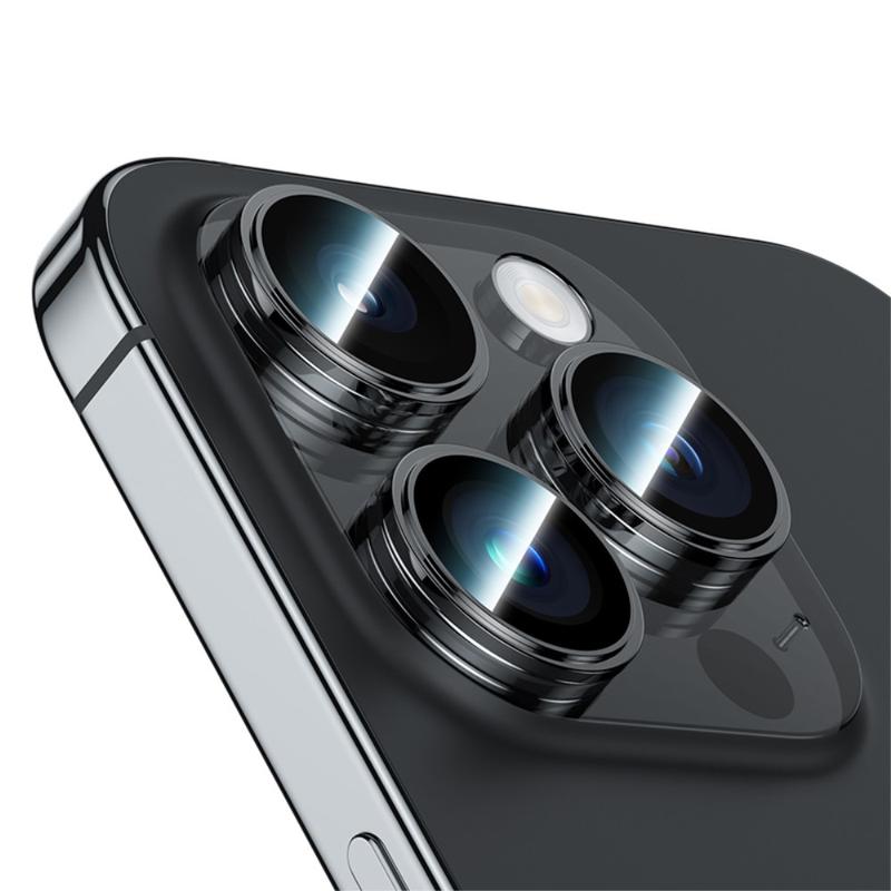 BENKS 3Pcs / sæt kameralinsebeskytter til iPhone 15 Pro / 15 Pro Max Corming Grila glaslinsefilm med aluminiumslegeringsramme - sort