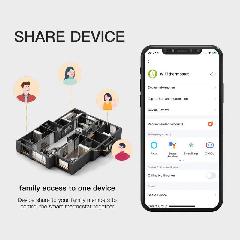 BHT-002 smart termostat er udviklet til at gøre styringen af kedelvarmen nemmere, mere præcis og mere praktisk i dagligdagen. Med sit moderne design, kompakte vægmonterede format og 3,0-tommers LCD-berøringsskærm er den et praktisk supplement til huse, lejligheder, kontorer og lignende indendørs rum. Takket være den tydelige temperaturvisning og de smarte tilslutningsmuligheder hjælper den dig med at regulere indeklimaet med mindre besvær.
