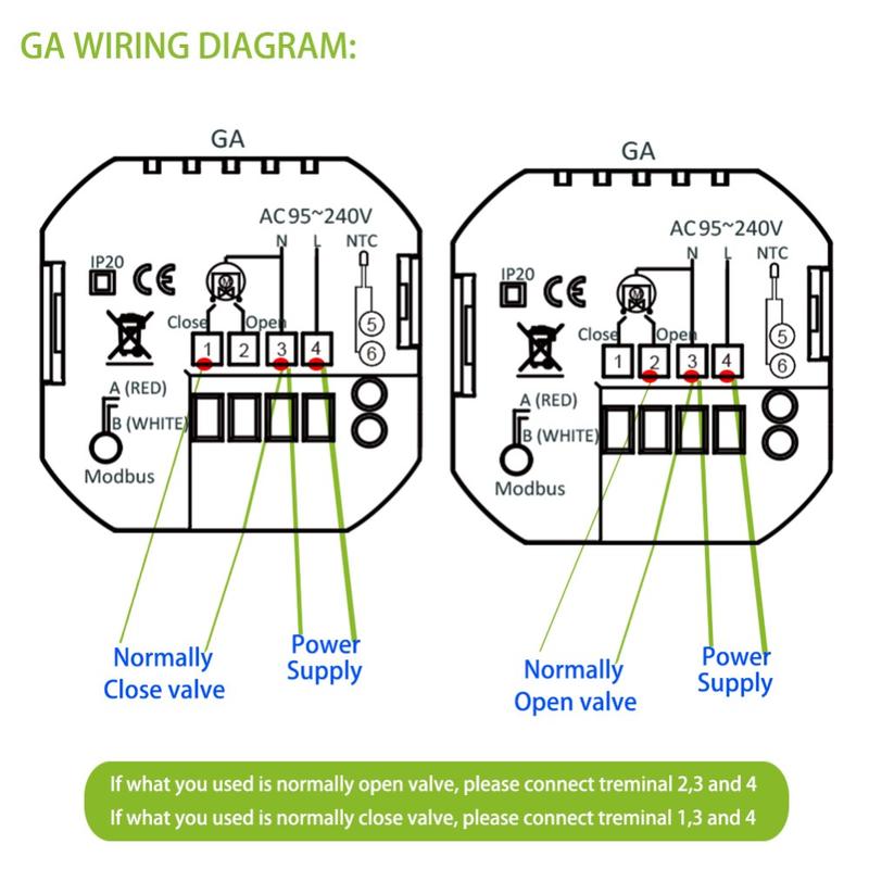 Denne termostat er fremstillet af holdbart, flammehæmmende PC+ABS-materiale og er designet til langvarig ydeevne og stabil drift. Beskyttelse mod strømafbrydelser hjælper med at bevare dine gemte indstillinger, hvilket reducerer behovet for at konfigurere enheden igen efter afbrydelser. Dens indbyggede installationsformat passer til en standard 86 x 86 mm vægdåse eller en konventionel europæisk dåse, hvilket gør den velegnet til en bred vifte af interiører.