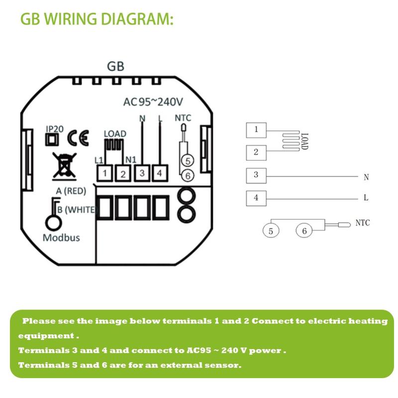 Denne termostat er fremstillet af holdbart, flammehæmmende PC+ABS-materiale og er designet til langvarig ydeevne og stabil drift. Beskyttelse mod strømafbrydelser hjælper med at bevare dine gemte indstillinger, hvilket reducerer behovet for at konfigurere enheden igen efter afbrydelser. Dens indbyggede installationsformat passer til en standard 86 x 86 mm vægdåse eller en konventionel europæisk dåse, hvilket gør den velegnet til en bred vifte af interiører.