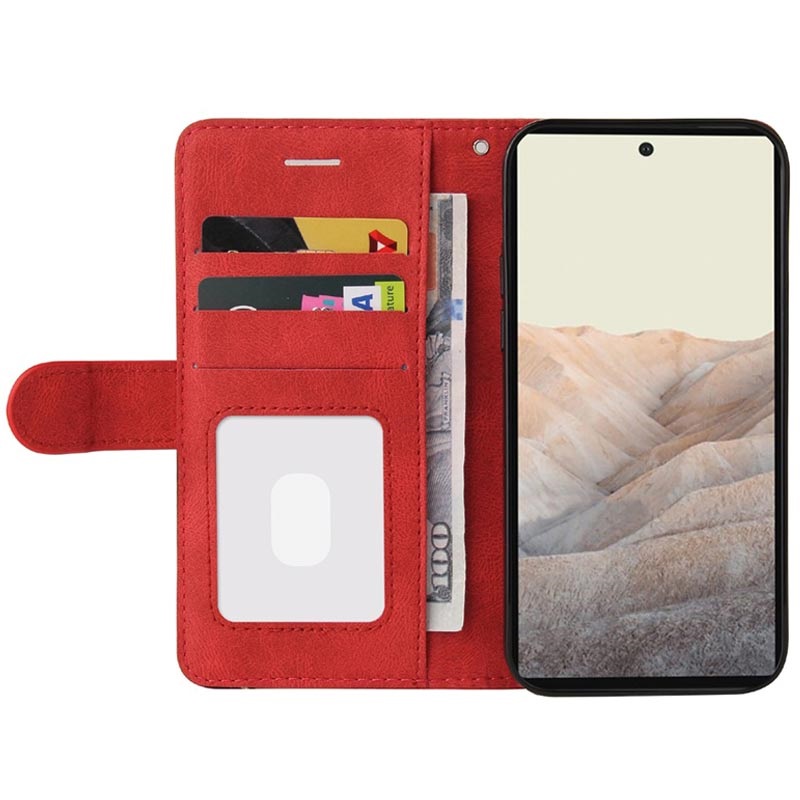 Tegnebogsdesignet giver plads til kreditkort og kontanter, mens din Google Pixel 6 er beskyttet mod slid og daglige skader. En aftagelig lanyard giver ekstra sikkerhed, og en foldbar bagside gør det muligt at se video håndfrit.