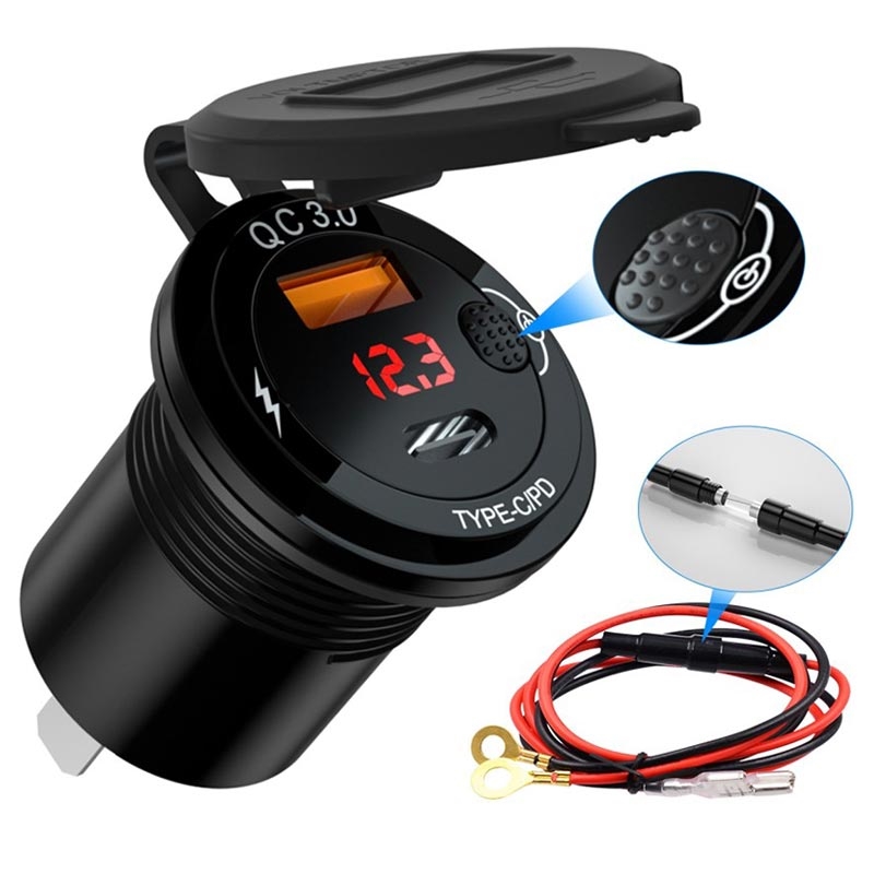 Udover at levere sikker og effektiv opladning af dine mobile enheder, viser denne model også dit bilbatteris spænding i real-time, og har en knap så du kan slukke for det, når du ikke skal bruge det. Du kan installere den i stedet for 12V/24V fatningen i din bil, og bore et nyt 29 mm hul, og forbinde den til det elektriske system, ved at at bruge de medfølgende kabler med en integreret 20A sikring.