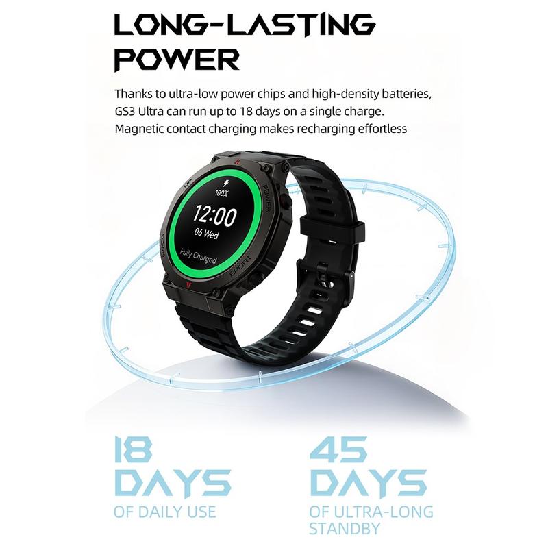 Black Shark GS3 Ultra Smartwatch - 1.43" AMOLED-skærm, 160+ sportstilstande, sundhedsovervågning og Bluetooth-opkald