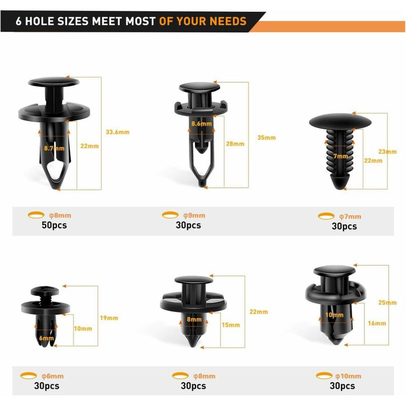 Med seks størrelser, 200 stykker og et praktisk lirkeværktøj har du al den hardware, du skal bruge til rutinemæssige bilreparationer - det er slut med at gennemsøge reservedelsbutikker for manglende clips. Den universelle kompatibilitet og holdbare konstruktion gør den til et must-have for alle, der ønsker at spare tid og reducere besværet, når de passer deres bil.