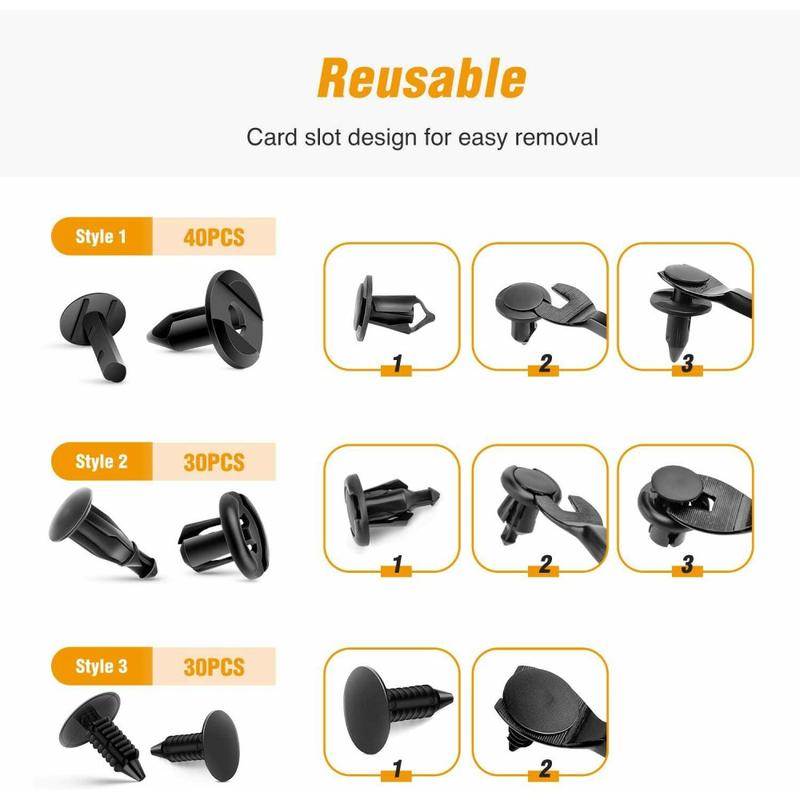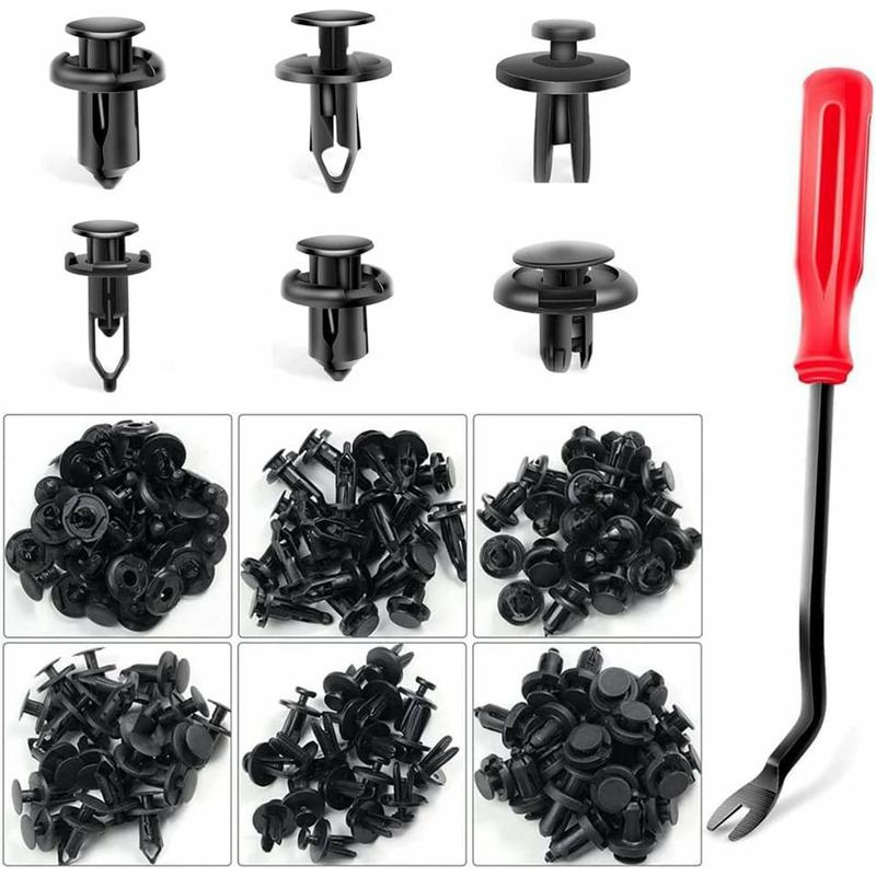 Blanding af Plast Klips til Bilpaneler & Stødfangere - med Fjernelsesværktøj - 200 stk.
