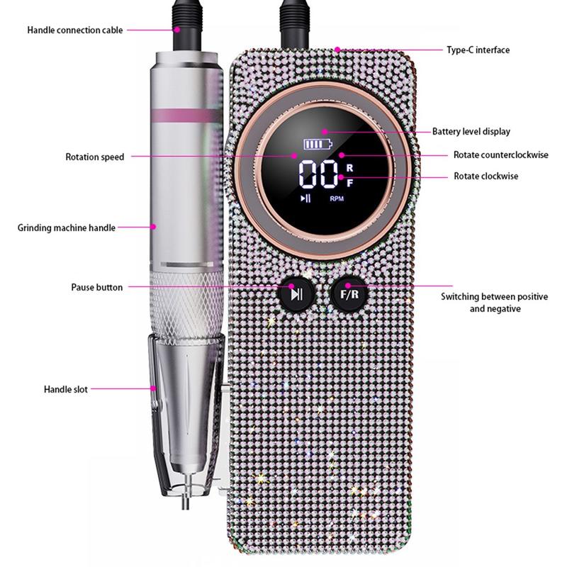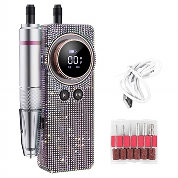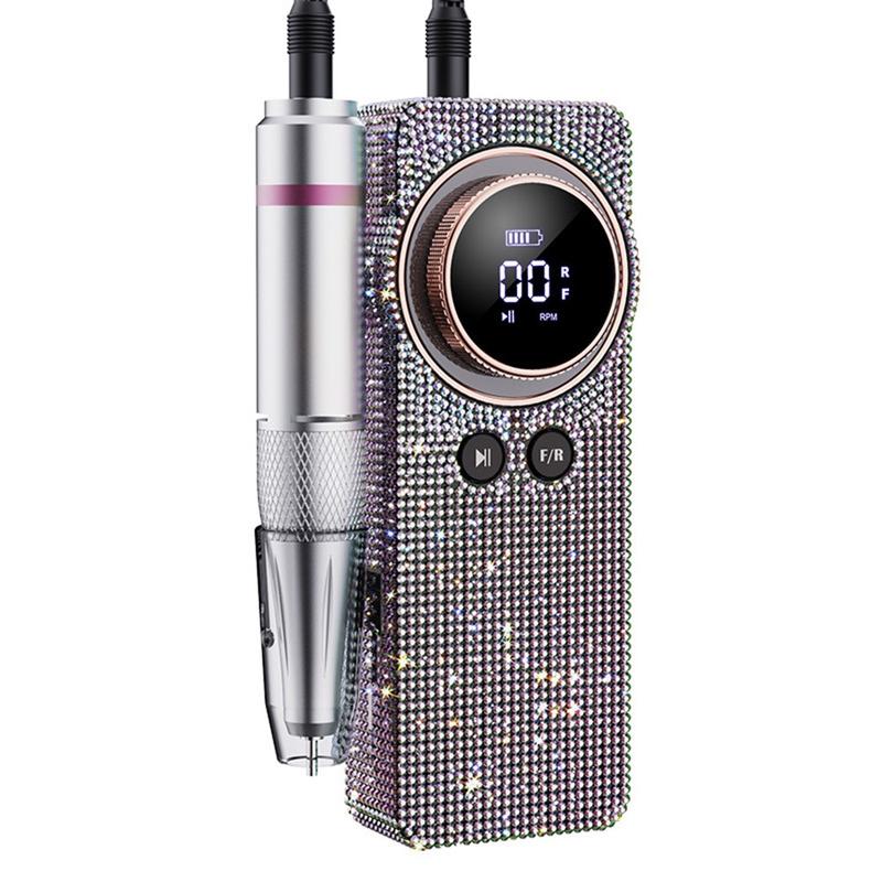 BLUEQUE BQ-108 elektrisk neglefil med diamantdesign til gel og akryl - genopladelig neglefil med 35.000 omdrejninger i minuttet og LCD-skærm