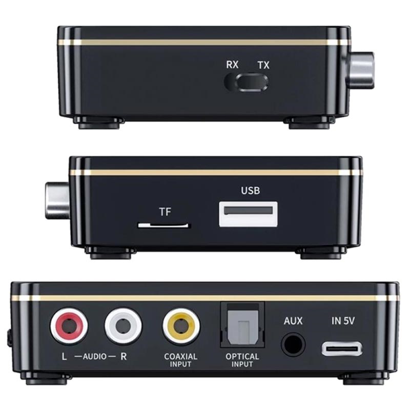 - Interface: 3,5mm AUX, 3,5mm RCA, koaksial, optisk, USB, TF-kort