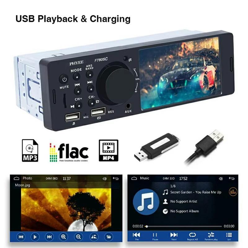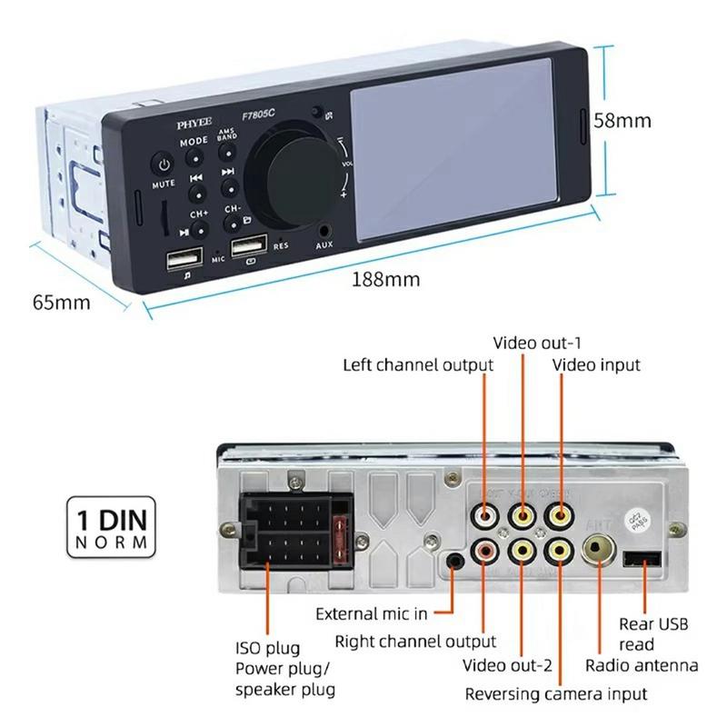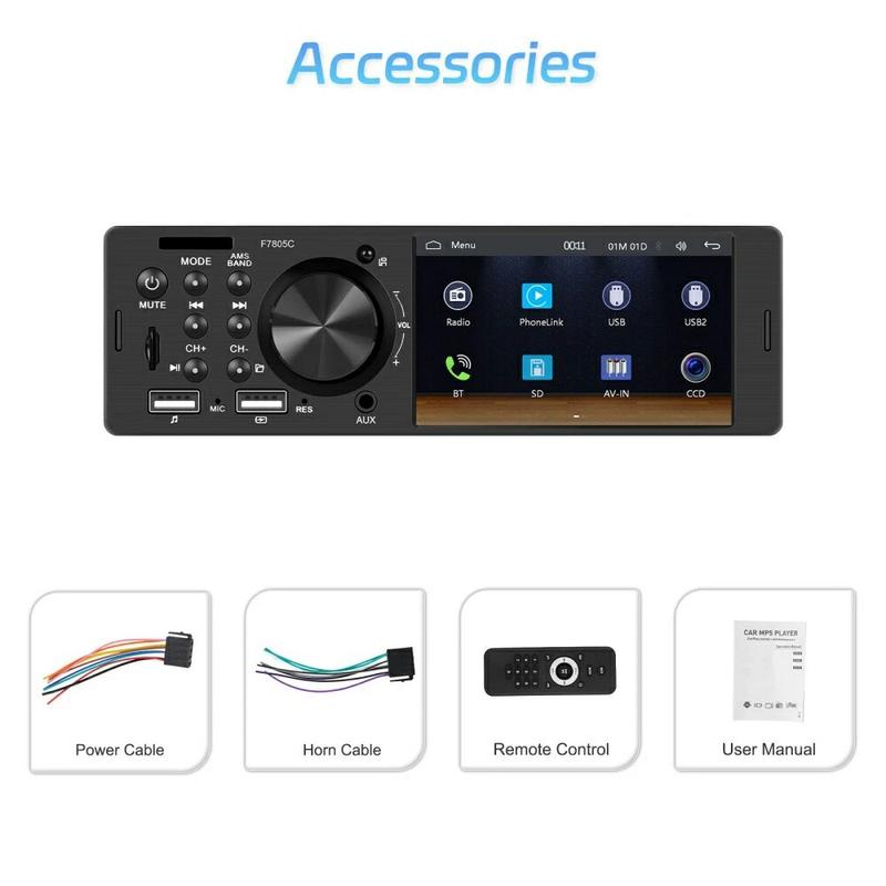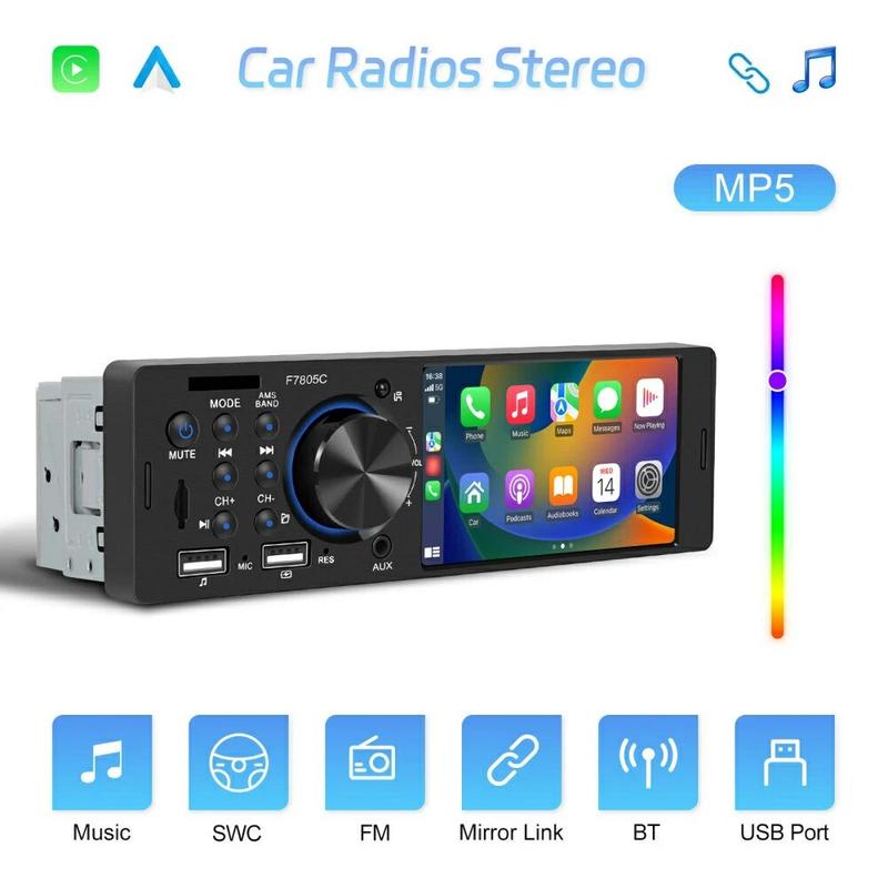 Forvandl et aldrende instrumentbræt til et smart-phone-hub med denne slanke F7805C head-unit. Den 10,4 cm (4,1 in) store kapacitive skærm håndterer kablet CarPlay, Android Auto og Mirror Link, så du kan følge kort, tage imod opkald og streame playlister uden at skulle fumle med din telefon. Bluetooth 5.1 holder samtalerne skarpe, mens en 7-farvet baggrundsbelysning giver dig mulighed for at matche fabriksbelysningen. Den er designet til 12 V-systemer og vejer under 0,4 kg og passer ind i de fleste single-DIN-stik med minimal ledningsføring.