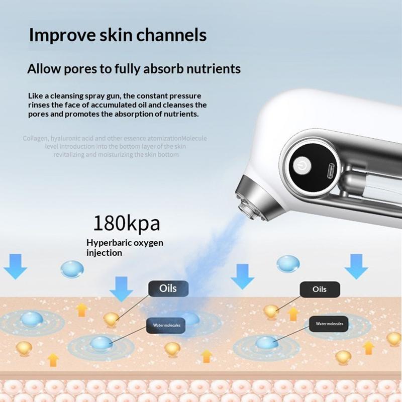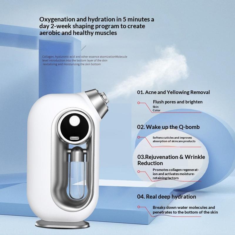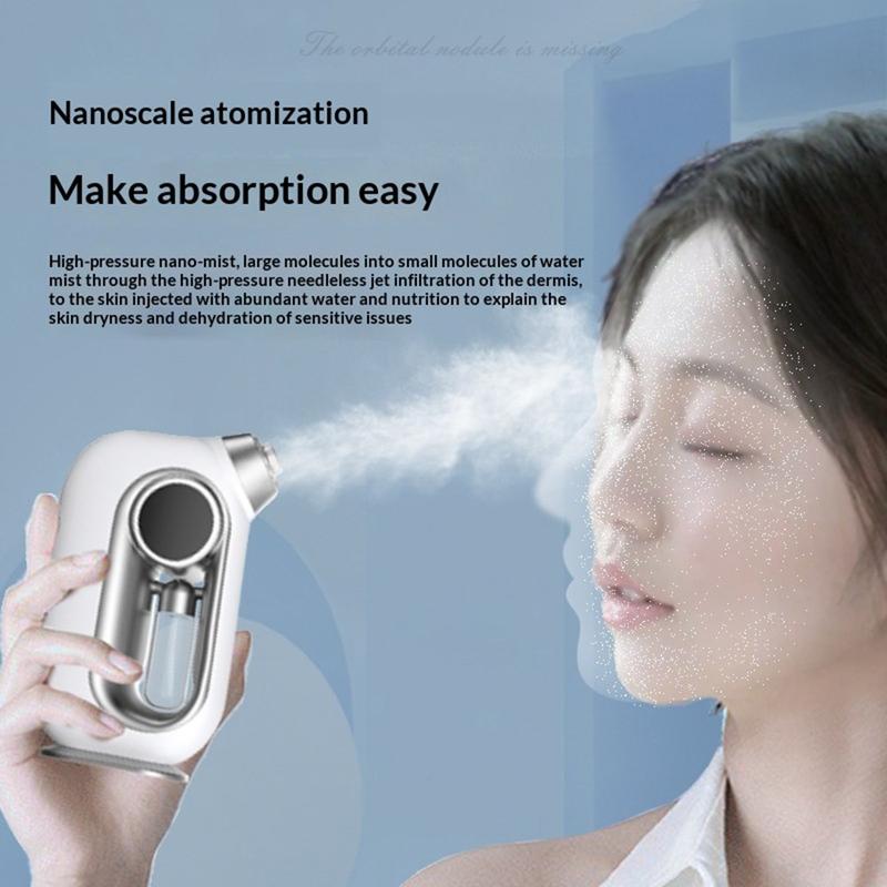 Det kompakte design gør den nem at bruge derhjemme eller på rejsen, mens den blå lysfunktion tilføjer et ekstra plejeelement til din skønhedsrutine. Med en 0,3 mm nano-sprøjtedyse og et genopladeligt batteri er det et praktisk apparat til bekvem ansigtsfugtning, når din hud har brug for et fugtboost.