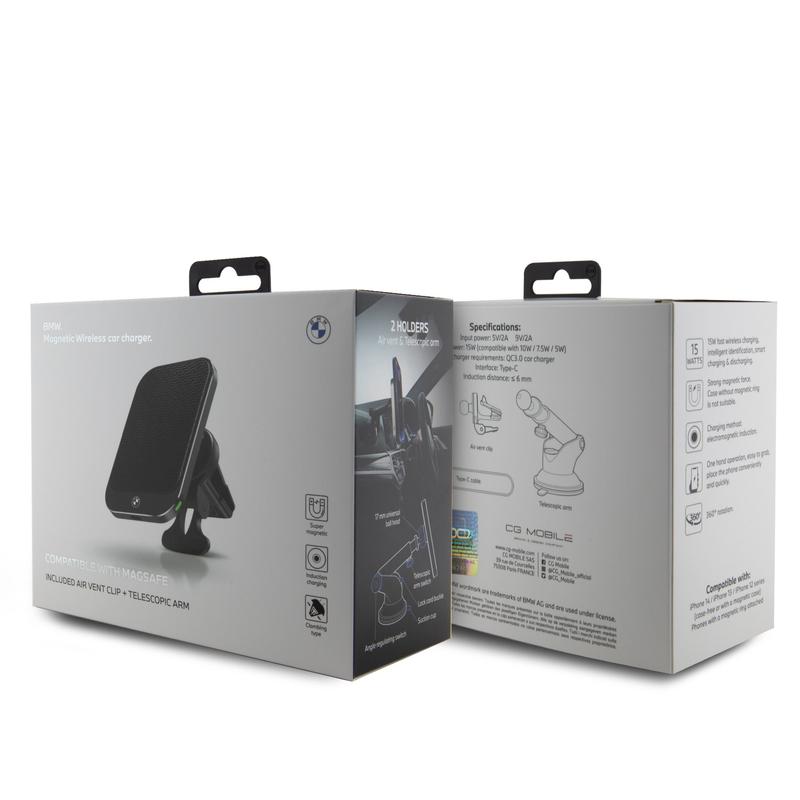 BMW Signature Edition magnetisk induktionsholder til bil med 15 W trådløs opladning - MagSafe-kompatibel, montering på ventilationsgitter og sugekop