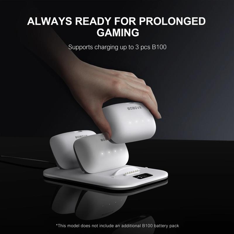 Understøtter opladning af op til 3 stk. B100-batterier til BOBOVR S3 Pro-hovedbøjle