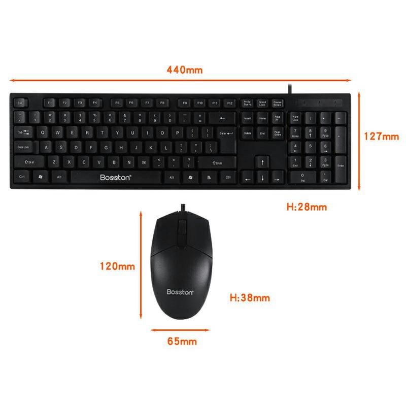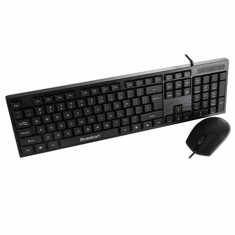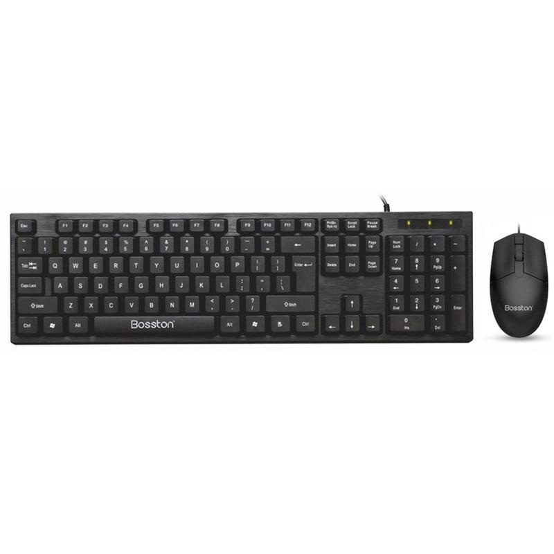 Bosston D5200 sæt med kablet USB-tastatur og ergonomisk mus med 1000 DPI
