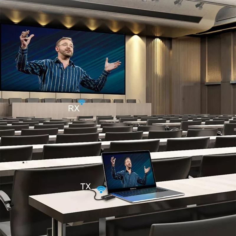 BOVBOX 090 Wireless HD Transmitter and Receiver Kit giver dig mulighed for at nyde videotransmission i høj kvalitet uden besværet med lange kabler. Dette sæt er designet til hjemmeunderholdning, præsentationer og professionelle AV-opsætninger og leverer stabil HD-streaming på afstande på op til 200meter med stort set ingen ventetid. Sæt det til, og du er klar til at streame fra laptop til projektor, tv eller skærm på få sekunder.