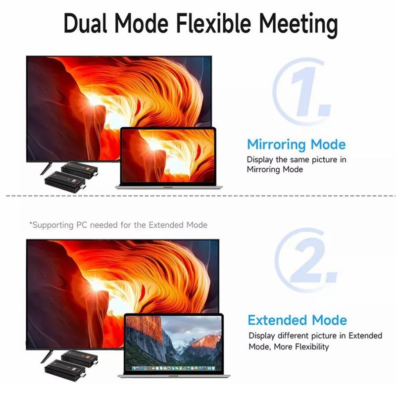 BOVBOX 090 Wireless HD Transmitter & Receiver Kit - 200m rækkevidde, 4K Input / 1080P Output, Dual-Band Low Latency Streaming til projektor, tv og laptop