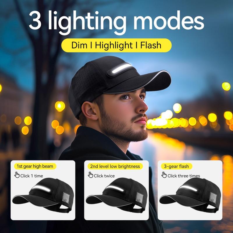 BQ-TD3 Genopladelig LED-baseballkasket med 3 lystilstande til udendørs eventyr