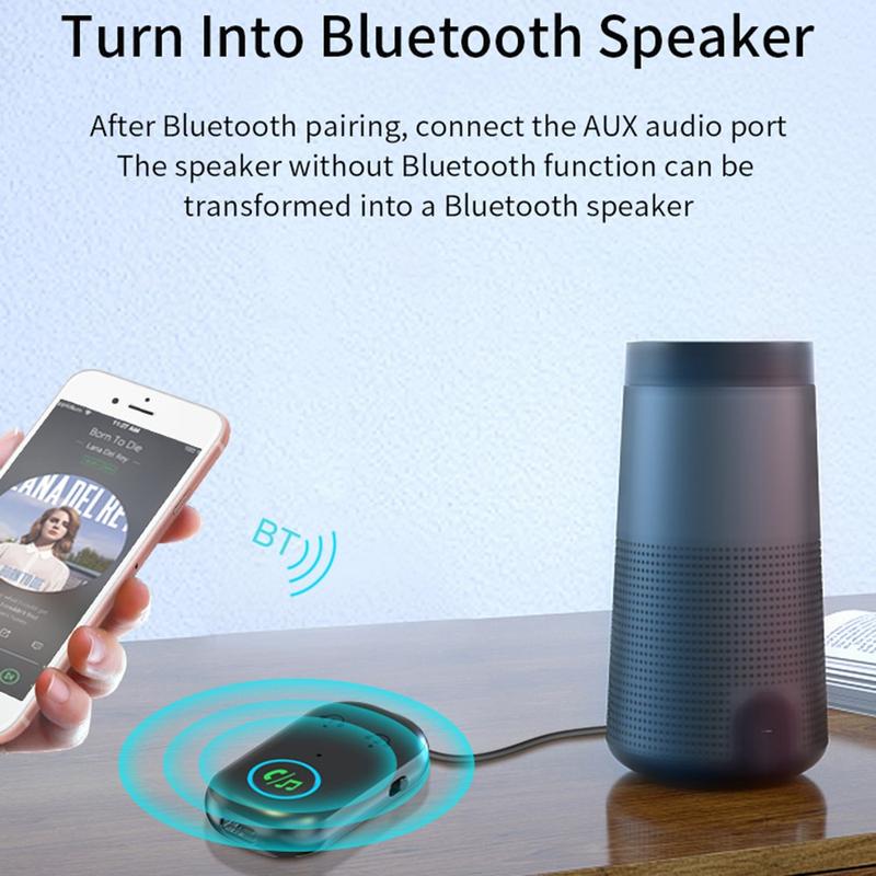 - Modtager- og senderfunktioner: Konverter et bilsystem med AUX-indgang eller et ældre stereoanlæg til en Bluetooth-modtager, eller skift til sendertilstand for at streame fra ikke-Bluetooth-enheder.