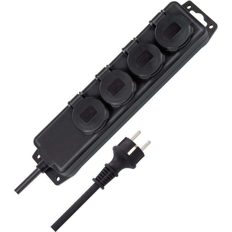 Brennenstuhl IP44 Udendørs Stikdåse 4 Udtag med Dæklåg - 2m - Sort