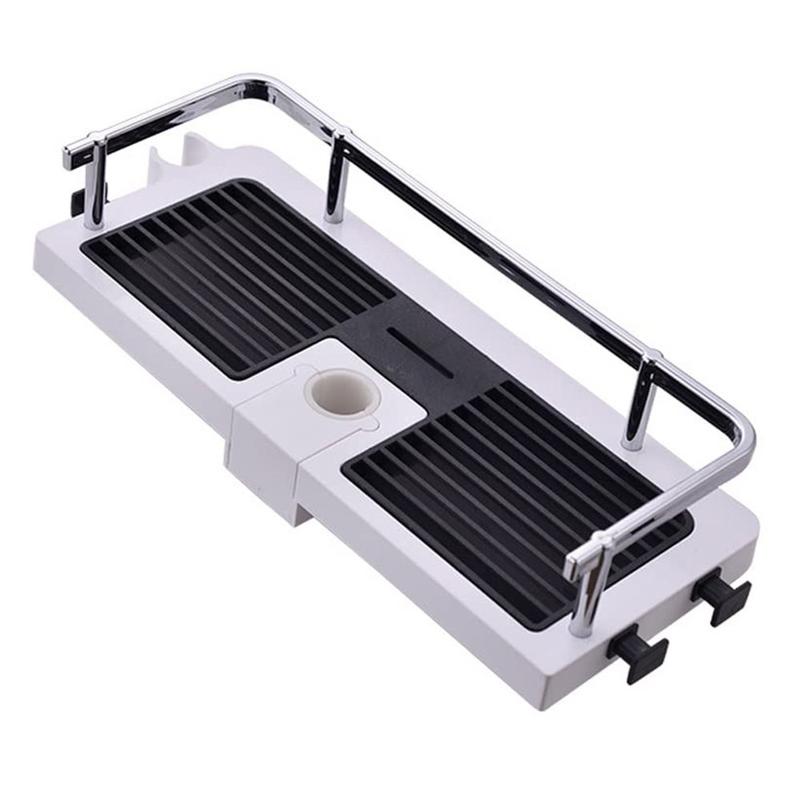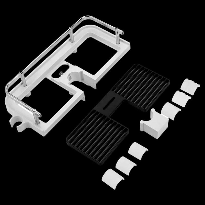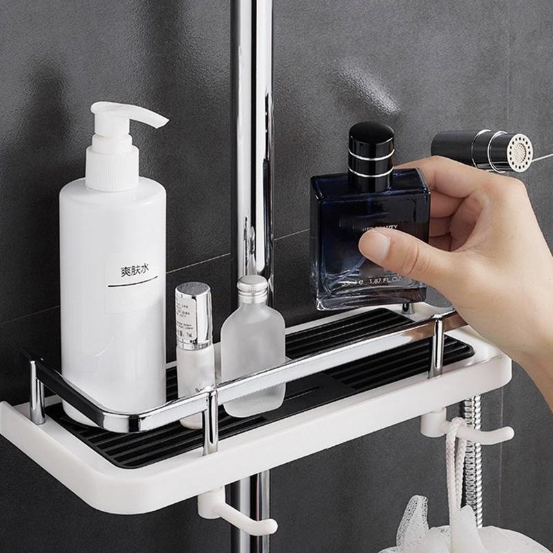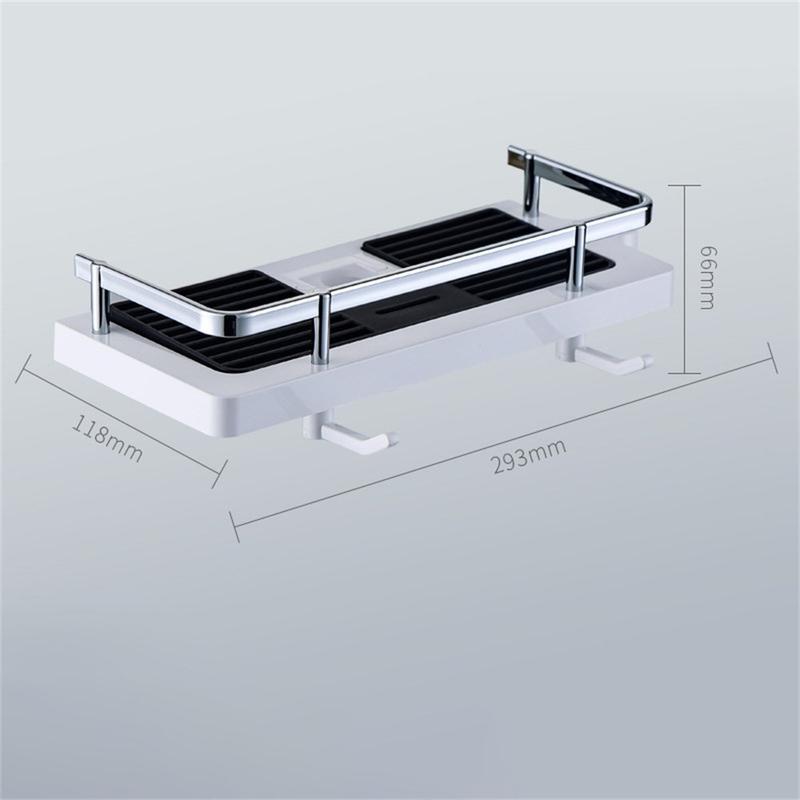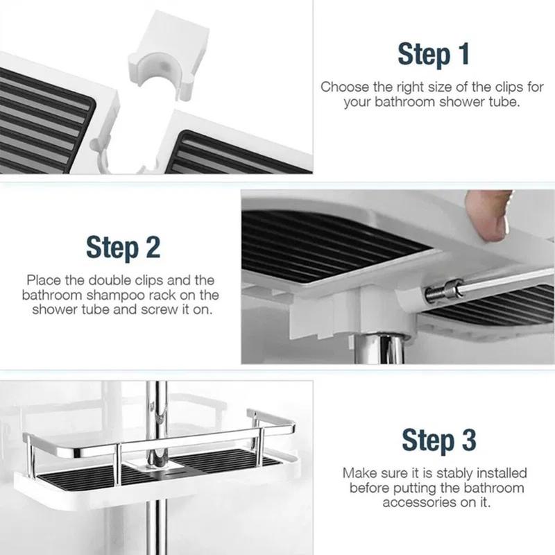 - Rummelig shampoo-bakke: Giver rigelig plads til opbevaring af shampoo, balsam, sæbe og andre vigtige ting til brusebadet, så de er inden for rækkevidde.