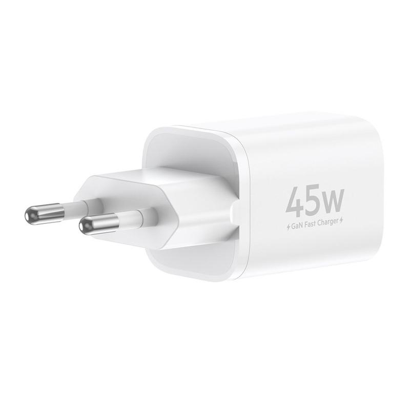 Denne 45W-oplader er drevet af avanceret Gallium Nitride (GaN)-teknologi og leverer høj effektivitet, reduceret varmeudvikling og hurtigere strømforsyning sammenlignet med traditionelle siliciumopladere.