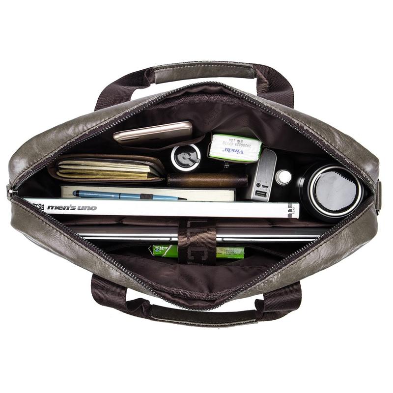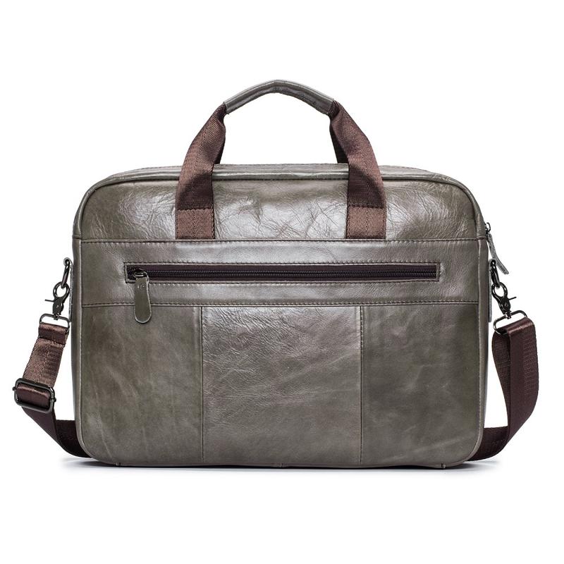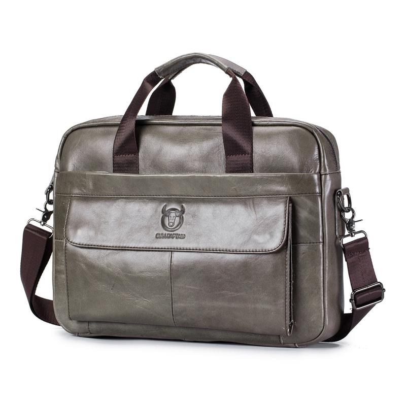 Bullcaptain 046 - Laptop taske i ægte læder - 40x30x7cm / 15"- Grå