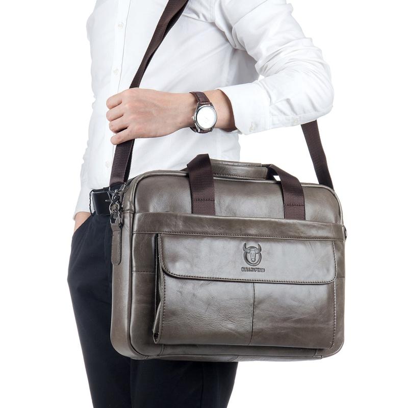 Bullcaptain 046 herrelæder-laptop- og crossbodytaske – førstelags koskind