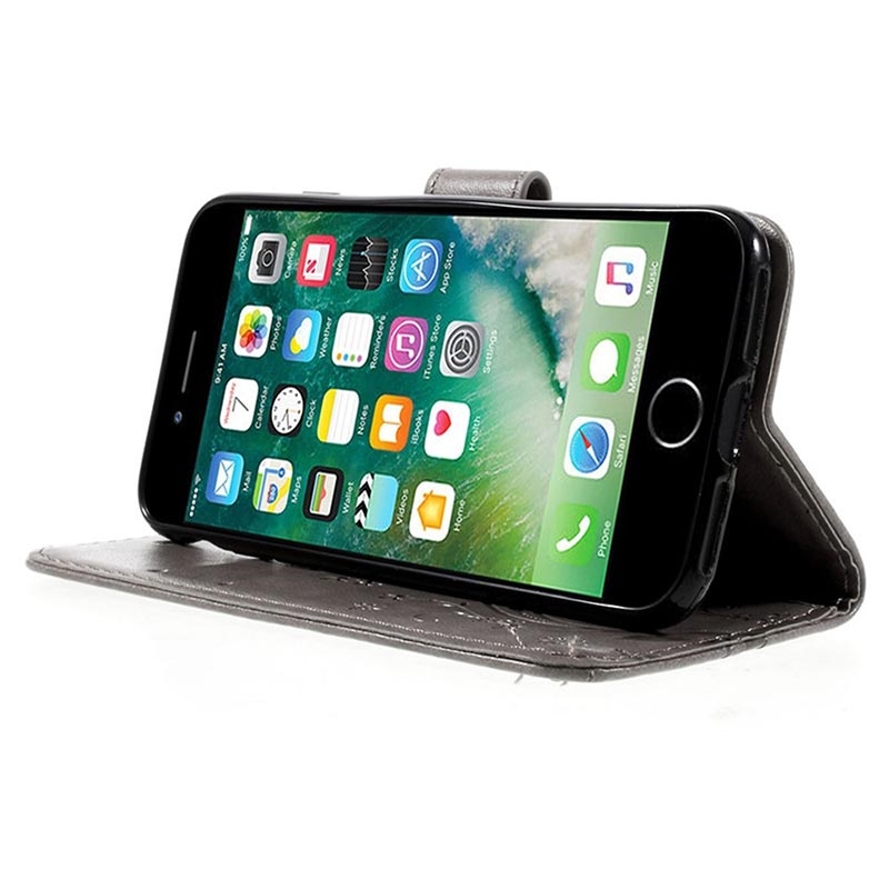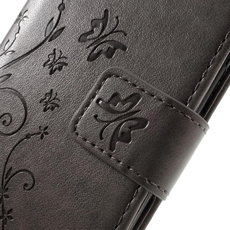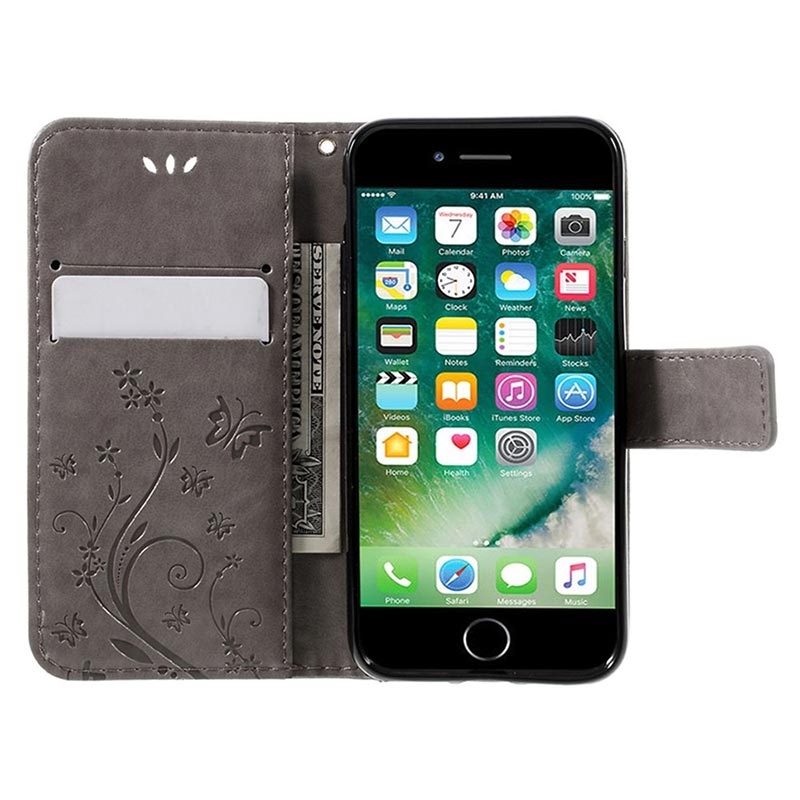 Denne smukke Imprint Butterfly Flower Læderpung til iPhone 7 kombinerer stil og funktionalitet på en måde, der gør den til et must-have tilbehør. Med sit elegante grå design og praktiske funktioner, er denne pung det perfekte valg for enhver, der ønsker at beskytte deres iPhone 7 med stil.