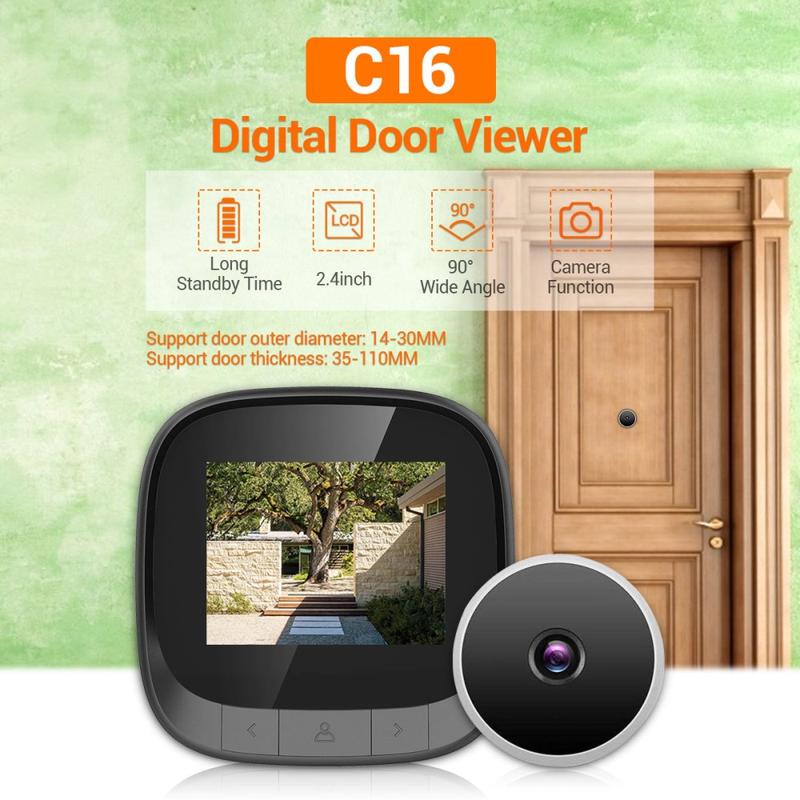 C16 Trådløs dørklokke med HD-kamera og digitalt display - 2,4" LCD digitalt kighulskamera med 90° vidvinkel og genopladeligt batteri
