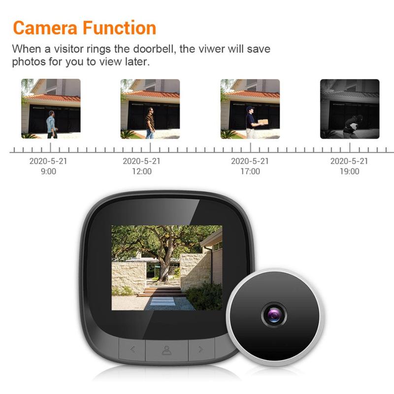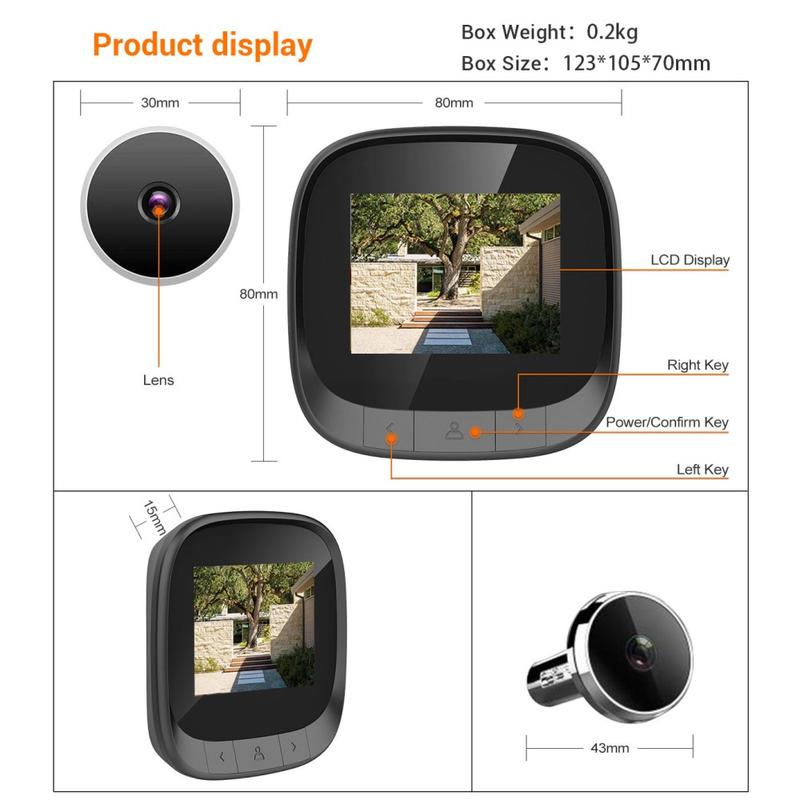 C16 2,4-tommer Smart Door Viewer tilbyder en højopløselig løsning med vidvinkelvisning til sikkerhed i hjemmet. Med en 2,4" TFT LCD-skærm, 0,3 MP kighulskamera og indbygget fotolagring giver den dig mulighed for at se besøgende tydeligt og registrere, hvem der kommer til din dør.
