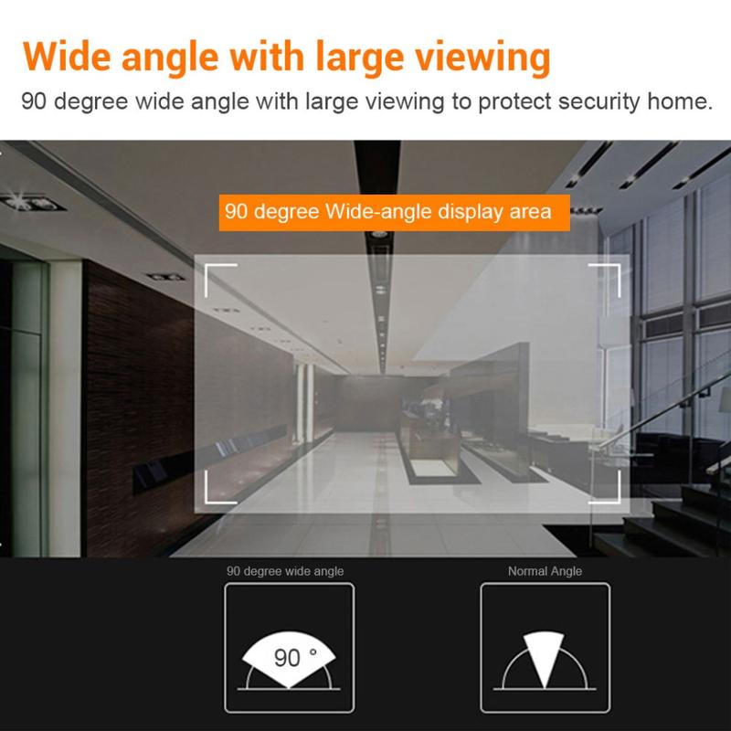 90°-linsen giver et bredt synsfelt, så du kan se besøgende og omgivelserne tydeligere end med et traditionelt kighul.