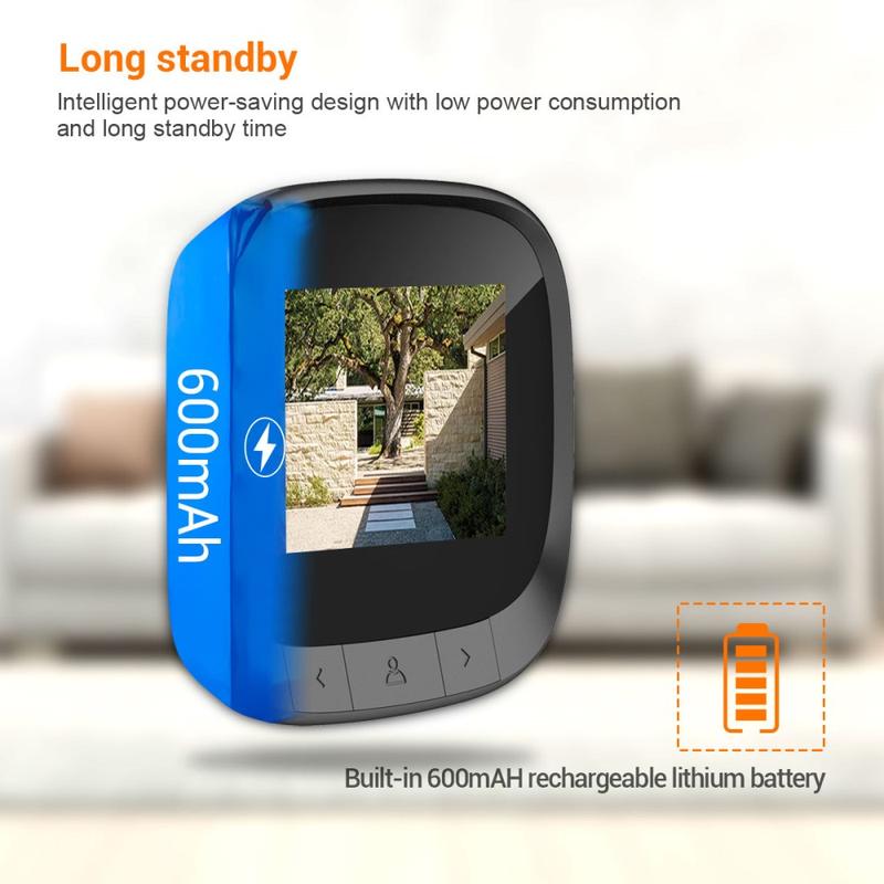 Denne kompakte dørspion drives af et indbygget 600 mAh litiumbatteri, som sikrer langvarig drift uden hyppig opladning.
