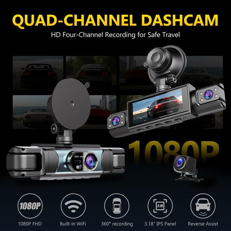 C315 4-kanals WiFi-dashcam - 1080p-bilkamera med 360°-dækning, nattesyn, parkeringsovervågning og bakkamera