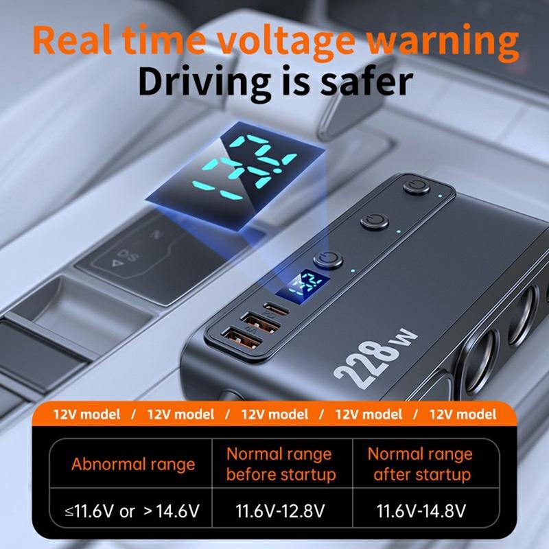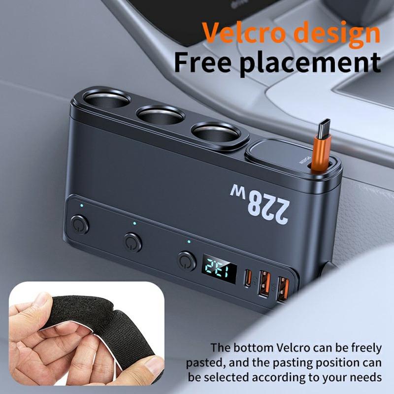 Hold alle dine enheder opladet på farten med C35L 3-i-1 hurtigoplader til bilen med udtrækkeligt kabel. Med en samlet effekt på 228W understøtter denne biloplader flere enheder på én gang, herunder smartphones, tablets, bilkameraer, opvarmede sædehynder, bilkøleskabe og meget mere. Et indbygget digitalt spændingsdisplay holder dig informeret om bilbatteriets tilstand i realtid, mens det udtrækkelige Type-C-kabel giver fleksibilitet og bekvemmelighed. C35L har smart opladningsteknologi med understøttelse af PD, QC3.0, Samsung AFC og Huawei FCP og distribuerer strøm sikkert og effektivt. Med flammehæmmende konstruktion, stabil skridsikker fastgørelse og individuelle portkontroller er den designet til både ydeevne og sikkerhed under hver køretur.